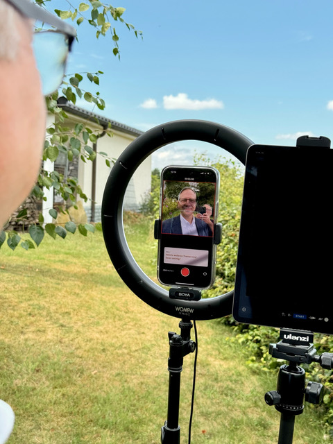 Noch zeitgerecht reicht Wolf Blesken, gemeinsamer Bürgermeisterkandidat von CDU und Grünen, das Video für den Kandidat:innen-Check des WDR ein. Dieses wird mit den anderen Videos der Kandidatinnen und Kandidaten voraussichtlich am 17. August online geschaltet. Dann stehen sich Maria Moritz als Amtsinhaberin und ihr Herausforderer online im direkten Vergleich gegenüber. Alle haben die gleichen drei Fragen zu beantworten und alle haben jeweils nur eine Minute pro Antwort zur Verfügung. Wie der Kandidat sich geschlagen hat, können die Wählerinnen und Wähler dann beurteilen, um ihre Entscheidung zu treffen. Jedenfalls haben die Aufnahmen im heimischen Garten von Wolf Blesken Spaß gemacht und sie waren dank guter technischer Ausstattung und Vorbereitung zügig im Kasten. Oder besser: im Handy.